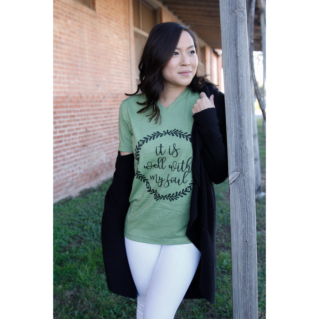 Fits True to Size. Printed on a sage tee.